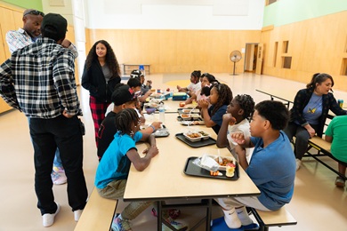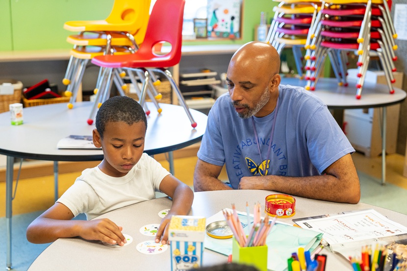 The school employed classroom mentors who could uniquely address some of the challenges these students were experiencing, offering support and a source of connection. Mentors, most of whom are local Black, Brown, and Indigenous professionals, spend time in the classrooms helping students regulate their emotions. They work in partnership with teachers to establish rapport with students and foster ways to meaningfully engage in their education. Outside of the classroom, mentors participate in community and sporting events with students and their families.